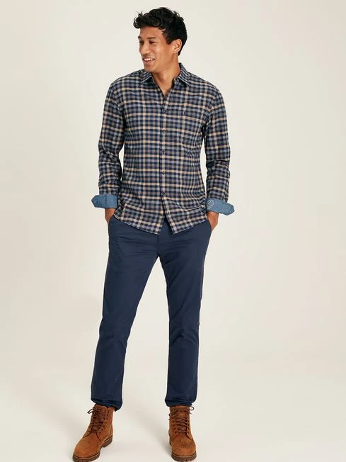 A man’s wardrobe isn’t complete without a collection of easy-going checked shirts to hand. With the Buchanan, both smart and casual boxes are ticked. Wear it unbuttoned over a t-shirt and jeans for casual days, or buttoned up with chinos for a more refined look. This all-rounder has a soft brushed fabric and an unfussy, classic fit. Other functional details include a button-down fastening, button cuffs and a patch pocket to the chest. The checked pattern features a deeper colour palette for the cooler months and is finished with chambray trims. Woven Classic fit Long sleeves Button-down fastening Button cuffs Collar Chambray trims Hanging loop to the back Checked