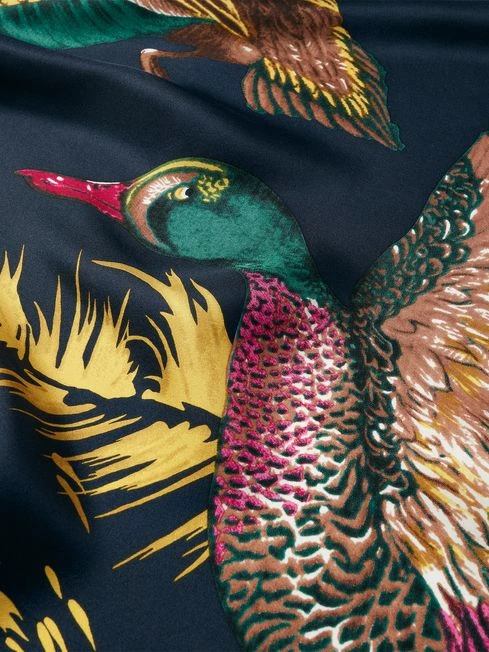 Elevate any ensemble with the Bloomfield scarf. Crafted from sublime silk, it’s an enduring piece that will play a key part of your wardrobe for years to come. The elaborate heritage print that adorns it features beautiful rich hues that reflect the premium feel of the piece. It’s cut to a large square which offers versatility when it comes to styling. Wear it round the neck for a traditional look, or over the head to recreate a classic driving scarf. 100% silk Square Hand-drawn heritage print Contrast colour trim Perfect for neck and head scarf styling Dimensions: 105cm x 105cm