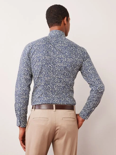 Made from 100% cotton, it features a split back yoke, mother-of-pearl buttons, and embroidery detail on the cuff.