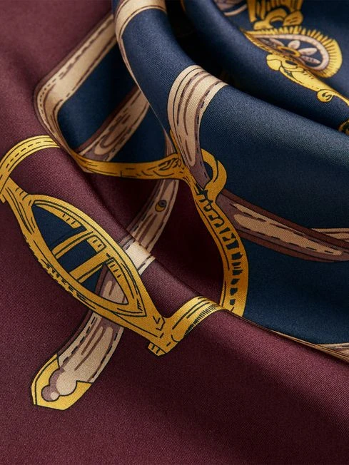 Elevate any ensemble with the Bloomfield scarf. Crafted from sublime silk, it’s an enduring piece that will play a key part of your wardrobe for years to come. The elaborate heritage print that adorns it features beautiful rich hues that reflect the premium feel of the piece. It’s cut to a square which offers versatility when it comes to styling. Wear it around the neck for a traditional look, or over the head to recreate a classic driving scarf. Woven 100% silk Square Hand-drawn heritage print Contrast colour trim Perfect for neck and head scarf styling Dimensions: 88 x 88cm