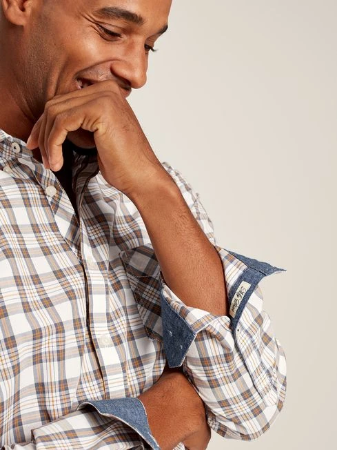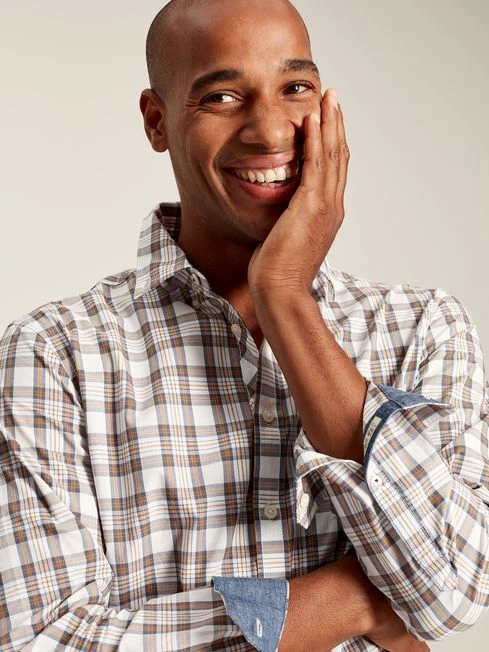A checked shirt is one of those can’t-go-wrong classics that every gent’s wardrobe requires. The Goodridge is cut from a crisp cotton poplin and is adorned in a check that sits back with the autumn and winter seasons. It has an unfussy classic fit, a button-down fastening with button-down collar and cuffs and a patch pocket to the chest. For a distinctive finish, it has chambray trims and hidden embroidery to the cuff. Cotton poplin Classic fit Button down fastening Button down collar Single patch pocket to the chest Button down cuffs Chambray trims Hidden embroidery to the cuff Joules embroidered hare to the hem