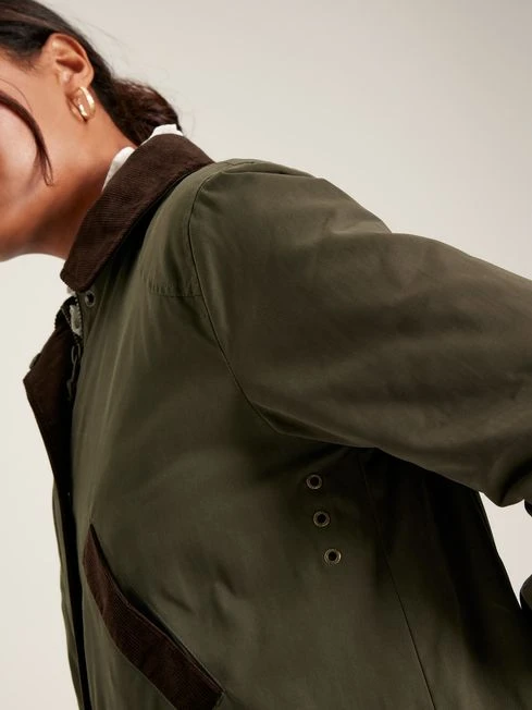 You might go as far as describing the wax jacket as the unofficial uniform of the countryside. It has long been a top-tier choice for all manner of outdoor pursuits from clay pigeon shooting, to a leisurely jaunt. The Banbury is our version. It has a dry wax outer that is shower resistant and benefits from a vertical quilted lining – in a heritage check pattern – that works as a warm barrier from the British weather. Its relaxed fit gives you the room you need for those all important layers underneath. It has a zip and popper fastening, bellow pockets, additional slip in pockets below the chest and popper vents to the back. Those classic elements you might expect from a style of this kind can be seen through the cord collar and trims and the functional throat latch with popper fastening. Roll up the cuffs to show a flash of the checked lining beneath and look out for the brass hare pin, which will come packaged separately, that can be pinned to the collar for a branded touch. Shower resistant dry wax Relaxed fit Vertical quilted lining in a heritage check Zip and popper fastening Classic cord collar and trims Throat latch with popper fastening Bellow pockets with popper fastenings and additional slip in pockets below the chest Back vents with double popper fastenings Comes with brass hare pin (packaged separately) Length: 83.5cm (based on UK size 12)