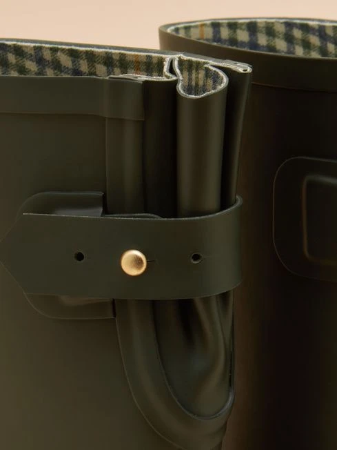 From walking the country show circuit to walking the dogs on a drizzly afternoon, our Wistow mid-height wellies will keep you dry, protected and looking pretty snappy too. They have an adjustable elastic gusset for the perfect fit on the calf and feature specially-designed water dispersing outsoles for superior grip. As a touch of heritage-inspired style we’ve added a traditional check print to the lining, a branded leather badge to the front and a matte textured effect to the heel counter. Natural rubber Mid-height Waterproof Heritage check lining Adjustable back gusset with strap Water dispersing outsoles Removable insole Branded leather badge Matte textured rubber heel counter Covered By Our One Year Welly Guarantee