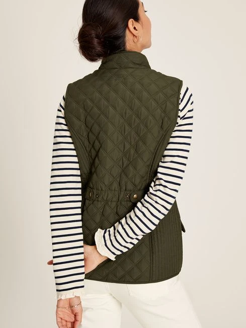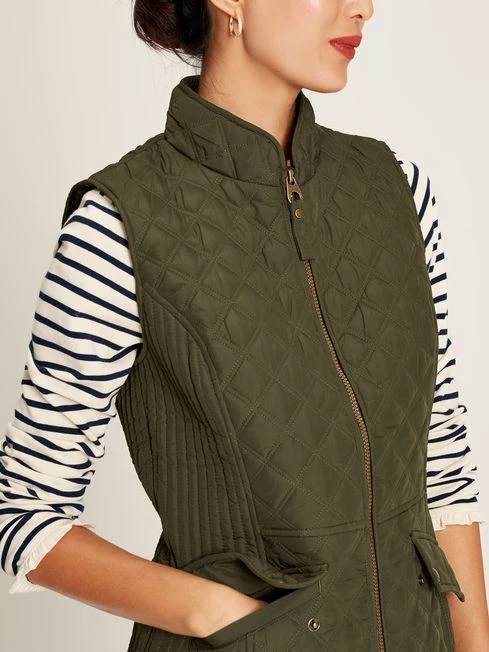 Our Minx gilet is a much-loved outdoor essential, perfectly made for popping into town or strolling through fields with the dog. This all-year-round layering piece has diamond quilting, a zip-through fastening, pockets with exposed metal poppers and an elasticated back channel. For a shape that’s as flattering as it is comfortable there’s fitted side panels down each side too. Woven Diamond quilting Zip fastening Fitted side panels for a flattering look Front flap pockets with metal poppers Elasticated back channel with popper adjusted tabs Joules embroidered hare to the hem