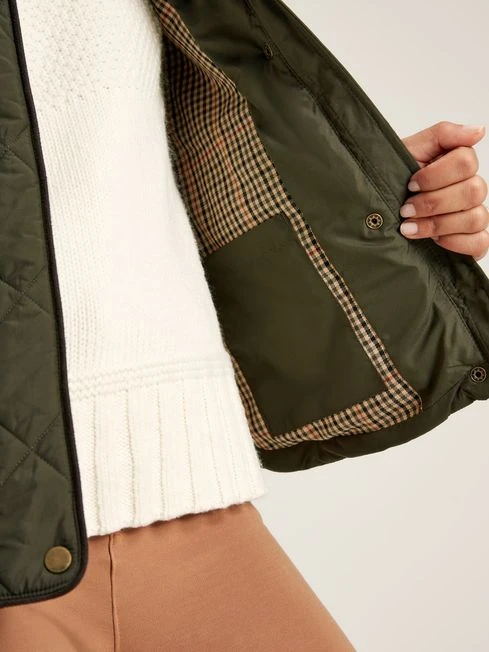 A diamond quilted gilet is a classic countryside style that should reside in everyone’s outdoor wardrobe. No matter your pursuit whether it’s a brisk stroll or an afternoon spent clay pigeon shooting, the Thornley gilet is a layer you’ll be thankful for. The diamond quilting is filled with wadding for warmth and the water-resistant finish is great for light rain. A concealed zip and popper fastening and smaller diamond quilting to the shoulders creates an overall sleek and stylish look. It also benefits from a funnel neck with suedette trim, corduroy piping to the pockets and armholes and an adjustable back tab with poppers for the perfect fit. Lastly (but certainly not least) there’s a heritage-checked lining to sit back with our wider autumn and winter collection. Water-resistant fabric Classic fit Diamond quilting with wadding Smaller scale diamond quilting to the shoulders Funnel neck with suedette trim Concealed zip and popper fastening (top and bottom popper are exposed) Heritage check lining Corduroy piping to the pockets and armholes Adjustable back tab with poppers Two front slip-in pockets