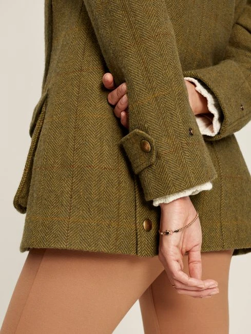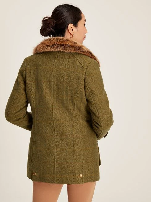 This is a sophisticated yet functional take on a traditional tweed fieldcoat. The details have been inspired by outdoor pursuits and the colours of the hardwearing tweed echo the rich landscape of the British countryside. Faux suede and antique-style brass trims add a little extra heritage, whilst the detachable luxury faux fur collar is a good-looking and practical feature. Lastly, the lightly quilted inner gilet easily detaches from the main jacket and when worn alone will make a perfect lighter layer. An investment piece that captures life in the countryside. Tweed Zip and popper fastening Removable quilted gilet Equestrian-inspired printed lining Antique-style brass trims Detachable faux fur collar Suede detailing Adjustable cuffs with poppers Patch pockets and side pockets with popper fastenings Length: 77cm (based on UK size 12)