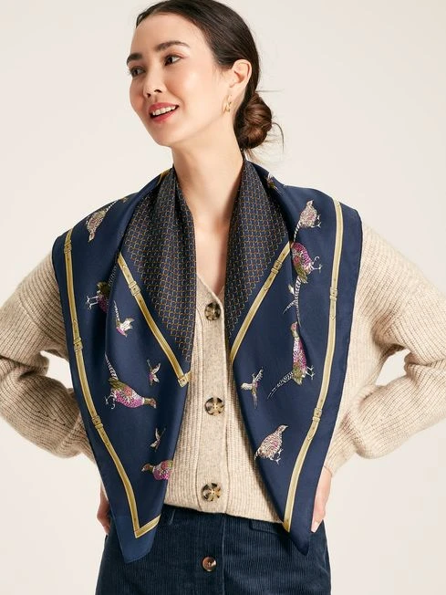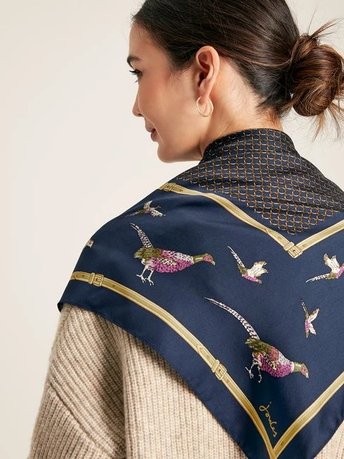 Elevate any ensemble with the Bloomfield scarf. Crafted from sublime silk, it’s an enduring piece that will play a key part of your wardrobe for years to come. The elaborate heritage print that adorns it features beautiful rich hues that reflect the premium feel of the piece. It’s cut to a square which offers versatility when it comes to styling. Wear it around the neck for a traditional look, or over the head to recreate a classic driving scarf. Woven 100% silk Square Hand-drawn heritage print Contrast colour trim Perfect for neck and head scarf styling Dimensions: 88 x 88cm