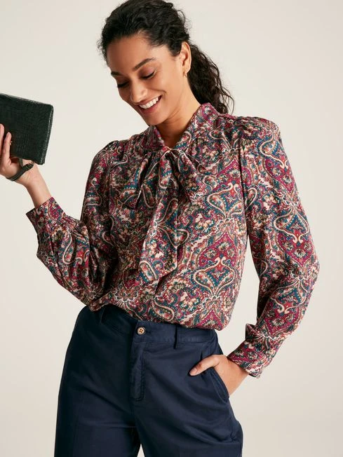 The Everly blouse harks back to our heritage combining an opulent print with quality fabric that will ensure it’s a beloved part of your wardrobe for a long time. It’s crafted from lightweight satin viscose, has long raglan sleeves with button cuffs and a concealed button placket. For a classic yet elegant touch, it’s finished with a pussybow and an intricate hand-drawn print. Style under blazers for a look that’s full of charm. Satin viscose Classic fit Long raglan sleeves Button cuffs Concealed button placket Pussybow tie Forward shoulder seams with gentle gathering Hand-drawn print