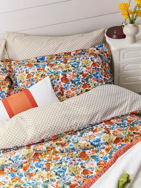 Crafted from sumptuously soft cotton, these pillowcases will add another layer of luxury to your bedding. They come as a set of two and are adorned in a yellow, intricate geometric print. They’ve been designed to sit back with the Bunbury Floral bedding set, but can be styled any way that takes your fancy.