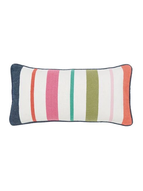 When it comes to stripes we think brighter is always better. Especially in the warmer months! This new woven cushion features multi-coloured vertical stripes that sing against a fresh créme background and is finished with plush navy piping around all four sides. It’s filled and ready to add style to your bedroom, sofa or wherever you fancy really. 100% BCI Cotton.