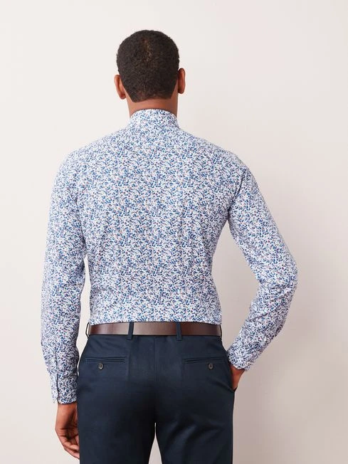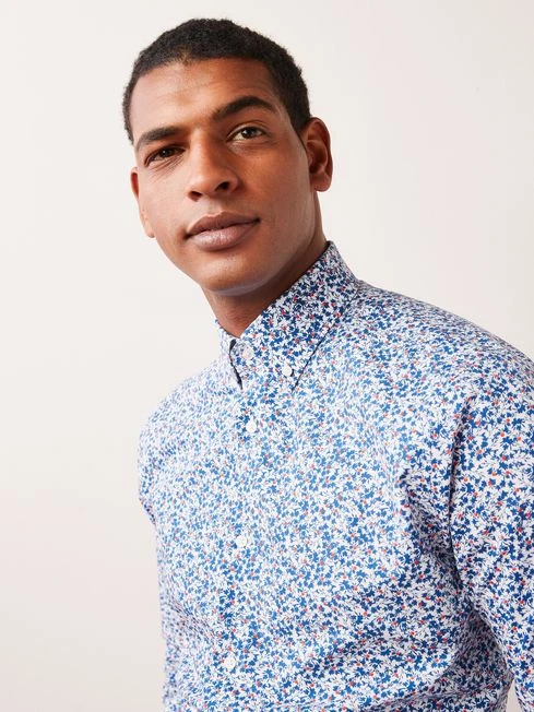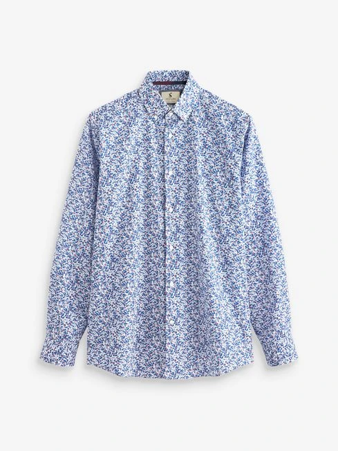Made from 100% cotton, it features a split back yoke, mother-of-pearl buttons, and embroidery detail on the cuff.