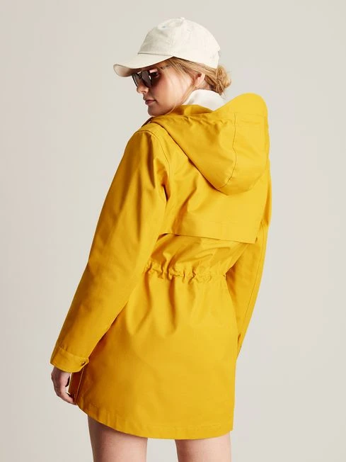 Our Padstow Raincoat is a new style and the perfect companion for wet weather walks. Its waterproof fabric and fully taped seams will keep you dry in a downpour, while its a-line shape and adjustable waist will make you feel your very best. It has an array of practical features too, including a full zip and popper fastening, two front flap pockets with poppers, and side vents with poppers for freer movement. It’s completed with toggles to the hood, a storm flap to the back and a Joules hare screen print to the hem. A-line Waterproof with fully taped seams Fixed hood with storm peak Hood toggles Adjustable waist for a flattering fit Full zip and popper fastening Two front pockets with popper fastenings Side vents with poppers for freer movement Storm flap to the back Length: 82cm (based on UK size 12)
